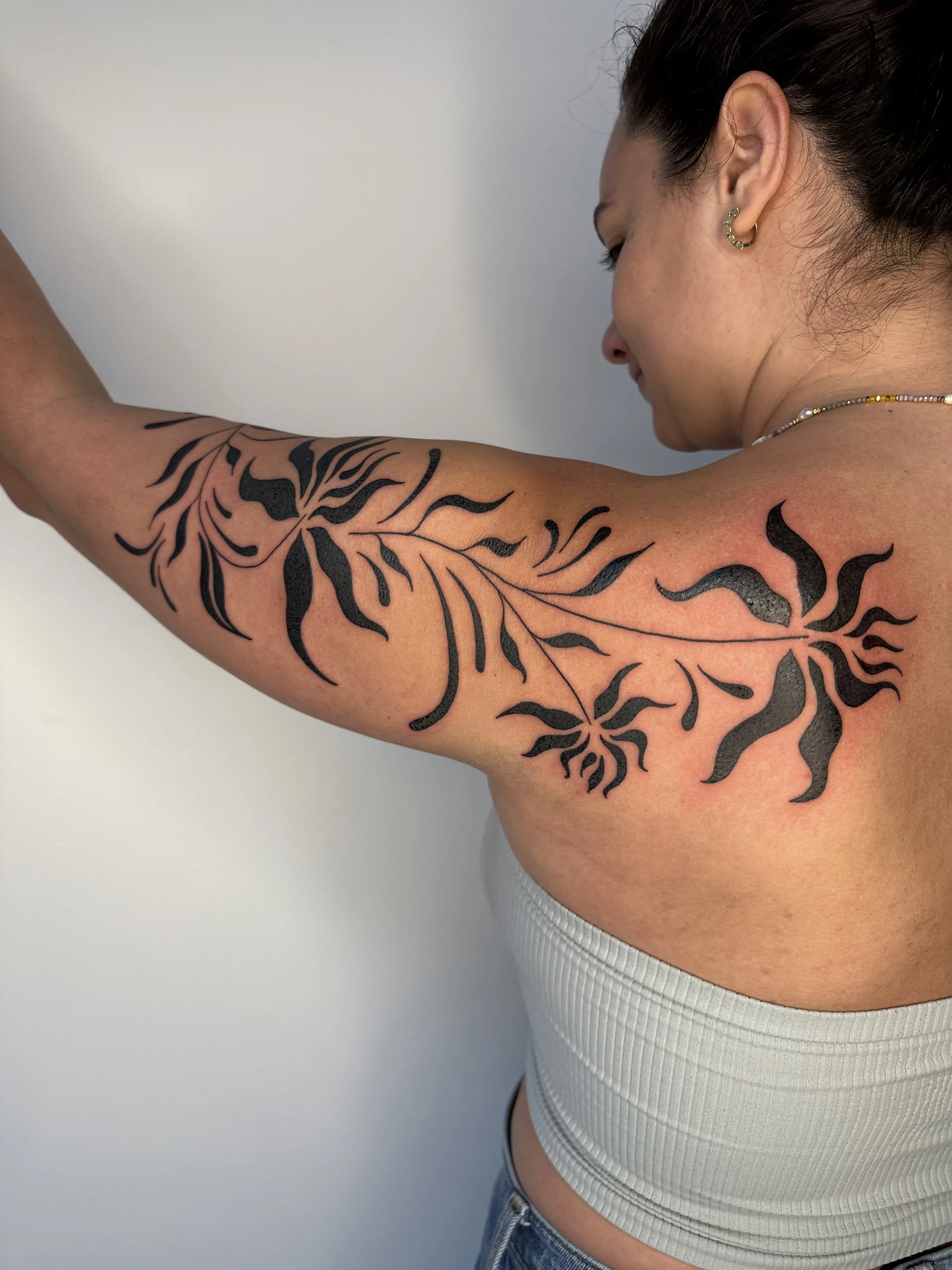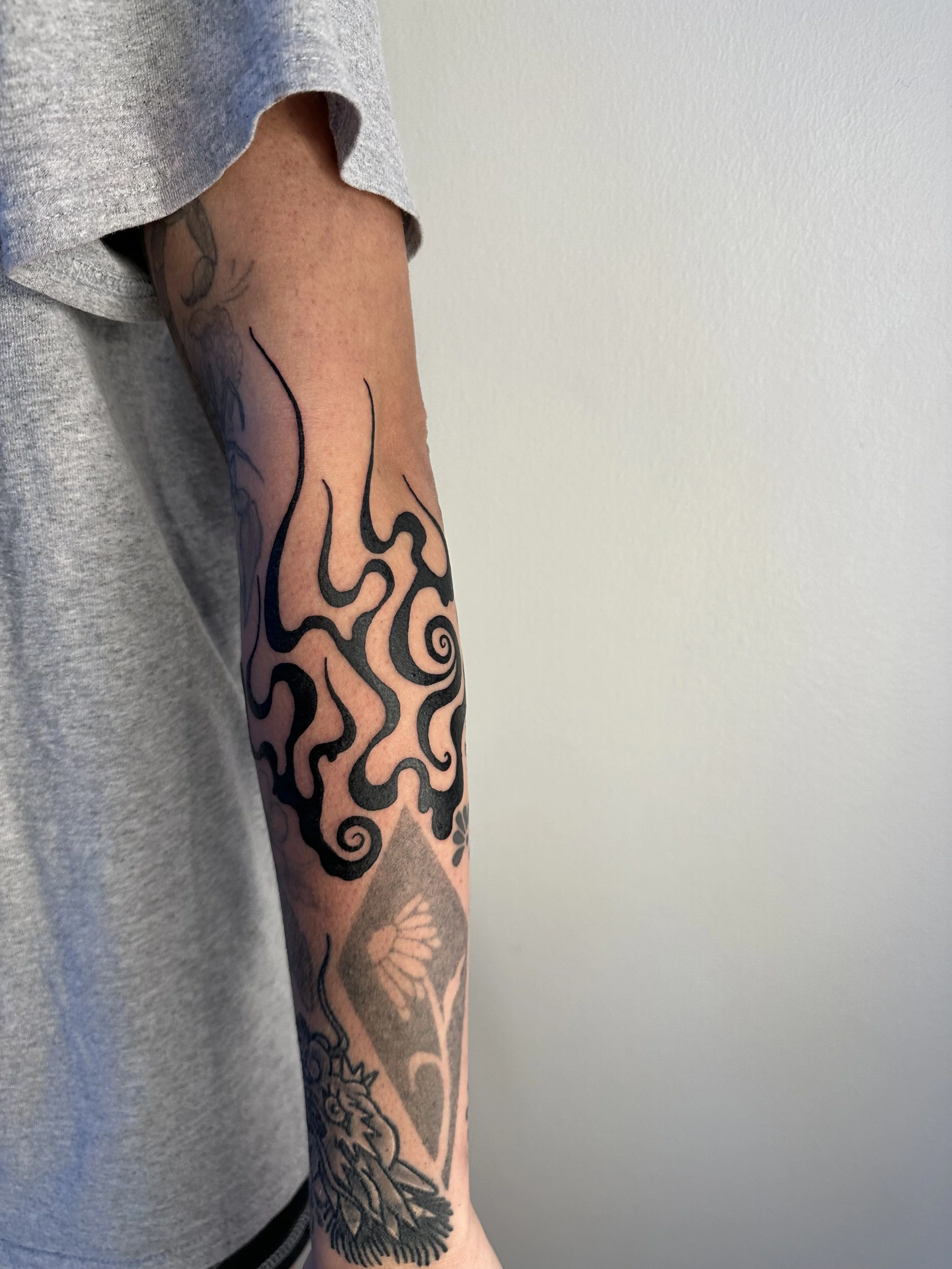 Sappy was raised in Austin, Texas. After joining No Good Tattoo in 2021, she became a co owner in the start 2025. Always having dreamt of a career in tattooing, they started learning to handpoke in 2016. She fell in love with the organic pace of handpoking and is inspired predominantly by the natural world and patterns.